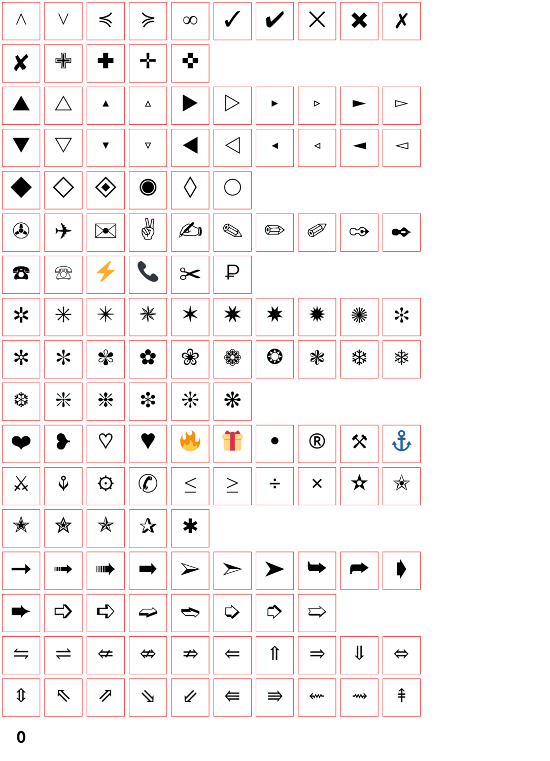- все символы принадлежат одному шрифту. Это не так! Некоторые символы не входят в состав шрифта, поэтому они могут отображаться альтернативным шрифтом или ячейка будет пустой.