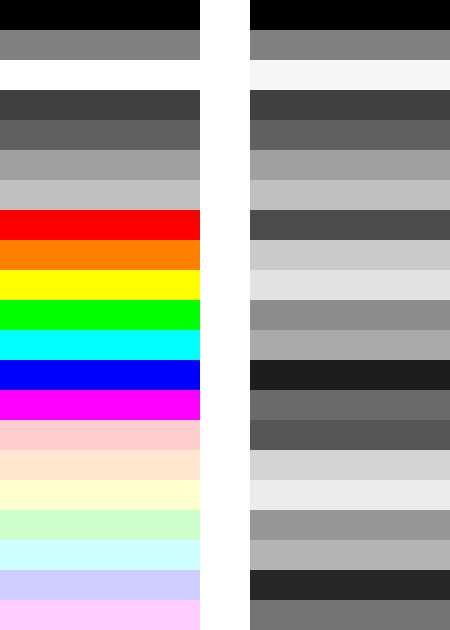 Создание цветовой карты изображения (Python, C, C++)В большинстве случаев для нужд компьютерного зрения достаточно изображения в градациях серого. Однако не следует забывать, что цвет также содержит большой объем информации. Эта информация позволяет отслеживать перемещение объекта по его цвету, а также разделять объекты при их перекрытии. Проблема работы с цветом заключается в огромном количестве оттенков цвета. Причем один и тот же цвет при разном освещении и на разных мониторах будет выглядеть несколько иначе. Если разместить два цвета рядом, то можно заметить, что некоторые цвета кажутся человеку более светлыми или более темными. Кроме того, разные люди могут по-разному видеть один и тот же цвет при одинаковых условиях освещения. При этом я даже не имею в виду дальтоников. Это касается и здоровых людей. Чтобы упростить работу с цветом в библиотеке UImageCV предусмотрена кластеризация всех цветов и их оттенков на 21 цвет. Первые 7 цветов являются оттенками серого. Остальные 14 цветов — это основные цвета в цветовой модели Изображение с цветами из цветовой карты (слева) и цветовая карта в оттенках серого (справа):